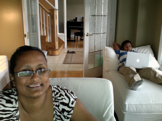 As you can see, my office is quite a hit to my babes to lounge too. Sammy saw my excitement over my office and said, “I still want suppers in the evening!” Huh? Sanj looked at him and said, “Who are you talking to? Never talk to a woman that way!” lol