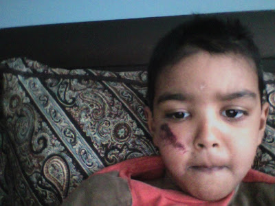 My sweetie pie got his first shiner.